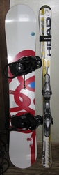 ほぼ同じ長さのボードとスキー板です。 下の←の位置がスキー板のバインのセンターなので ボードにしてみれば大分後ろ寄りになります。 ← |