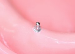 模型の歯肉にインプラントを埋め込んだ様子。先端が球状になっています |